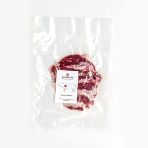 La Carrillera de Cerdo es un corte muy valorado en los últimos años, especialmente en guisos. Procede de la musculatura de la zona de la mandíbula del cerdo, de ahí su nombre. Por esa razón, de cada animal solo se extraen dos piezas, de en torno a 200 gramos.