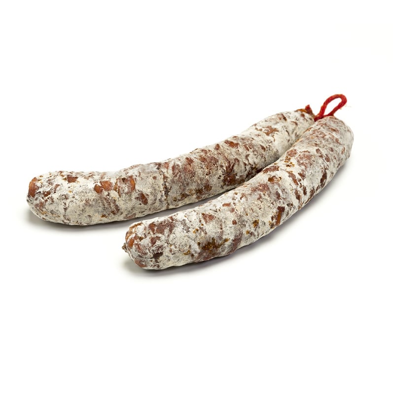 El Salchichón Ibérico Cular Segundín, está elaborado con las mejores carnes magras procedentes del cerdo ibérico, criados en dehesas al natural. Su elaboración artesanal con los mejores adobos, en tripa natural y una curación controlada, hacen de esta pieza ibérica un manjar. Al corte presenta un picado fino de color brillante, propio de la infiltración de grasas en el músculo del cerdo. Sencillo pero grandioso, un disfrute para los sentidos.