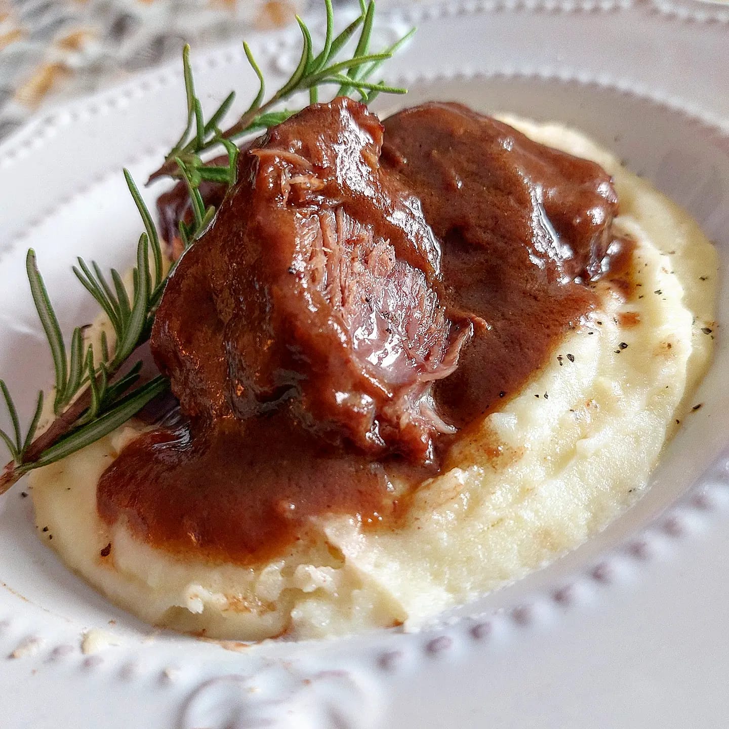 Maravillosa la ternura, sabor y aroma de las carrilleras ibéricas al vino tinto, impregnado de laurel y tomillo. Sabrosa e intensa la salsa al vino tinto que te proporcionará un bocado intenso, con muchas sensaciones. Y podemos rematar con una base de suave puré de patata. Sensacional!!